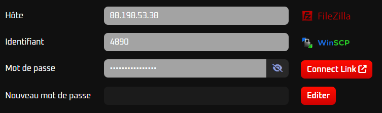 • En bas du WebFTP, vous retrouvez les informations nécessaires à la connexion :